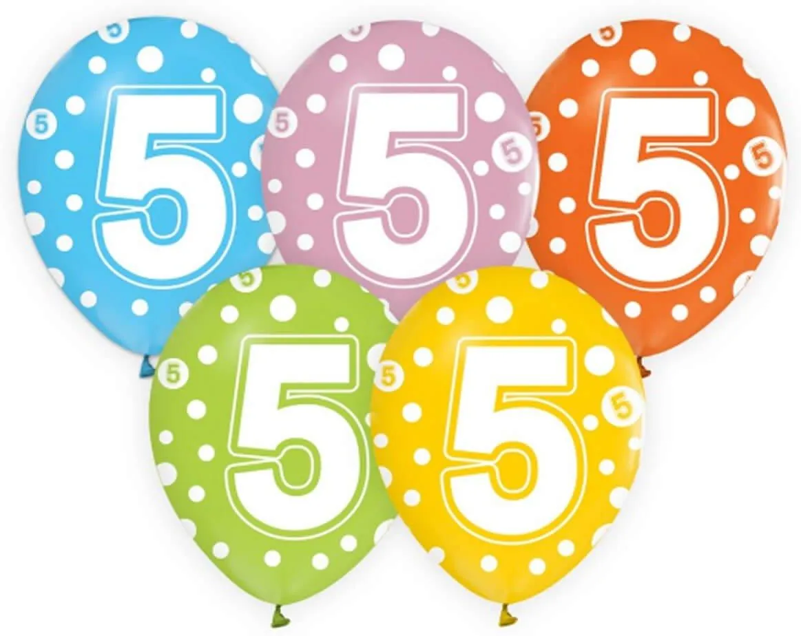 Godan Balony Lateksowe Z Cyfrą 5Mix 30Cm 5Szt