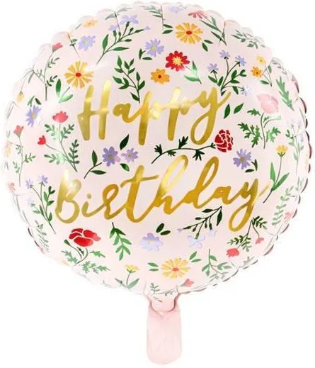 Party Deco Balon Foliowy 35Cm Happy Birthday Kwiaty